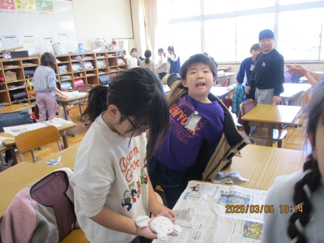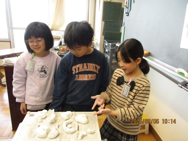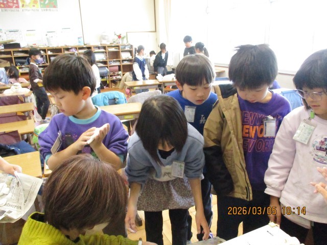 2年生の図画工作科では、大切な人へ思いを届ける「まごころメダル」を制作しています。「誰に渡そうかな?」「どんな飾りにしたら喜んでくれるかな?」と、相手の笑顔を思い浮かべながら、形を工夫して、世界に一つだけのメダルを作り上げています。制作中の真剣な眼差しや、相手を思いやる優しい言葉からは、この一年での大きな心の成長が感じられました。活動後の後片付けも、自分たちで協力してテキパキと。その頼もしい後ろ姿に、もうすぐ3年生になる準備がしっかり整っていることを確信しました。