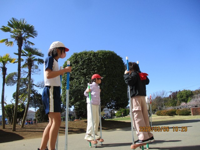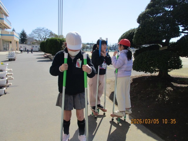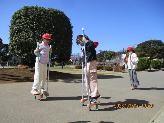 頬に当たる風はまだ冷たいものの、降り注ぐ日差しには確かな春の暖かさが感じられる絶好の遊び日和となりました。グラウンドでは、リズムよく刻まれる「なわとび」の音や、バランスをとりながら一歩ずつ進む「竹馬」、そして元気いっぱいに駆け回る「鬼ごっこ」など、子供たちが思い思いの遊びを心ゆくまで楽しんでいます。今日の昼休みのメインイベントは「全校鬼ごっこ」の予定です!