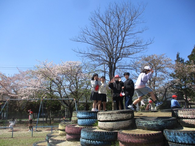 校庭には子供たちの明るい声が戻ってきました。春の陽光に照らされた桜の木の下で元気に遊び回る姿。子供たちはさっそく「郷州小パワー」を全開にしています。