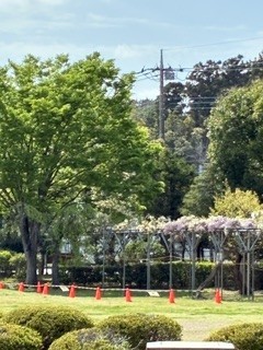 校庭の藤棚が色づき、甘い香りに誘われてクマバチたちが遊びに来るようになりました。クマバチは、その大きなで驚かされますが、温厚な性格で、人を刺すことはめったにありません。とはいえ、子供たちが驚いて手で払ったり、うっかり触れたりしないよう、現在は藤棚の周りに警戒線を張り、近づかないよう指導を行っています。春の自然を楽しみつつ、適切な距離を保って見守っていきたいと思います。