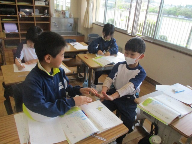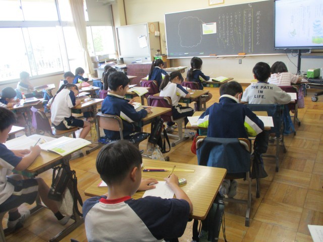 国語の時間に風のゆうびんやさんの読み取りをしていました。情景を思い浮かべながら読み取っています。