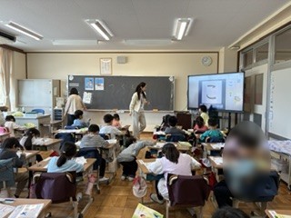 1年生が、ひらがなの練習と、自己紹介のための名刺作りに取り組んでいます。ひらがな一文字一文字の形を丁寧に確認しながら、自分の名前を書くことに挑戦。名刺の余白には、お寿司やいちごなど、自分の好きなものの絵を思い思いに描き込みました。明日からはいよいよ給食が始まります。