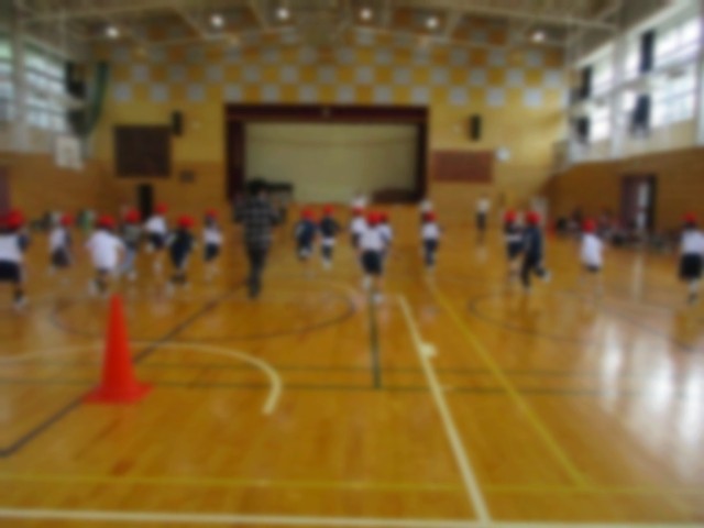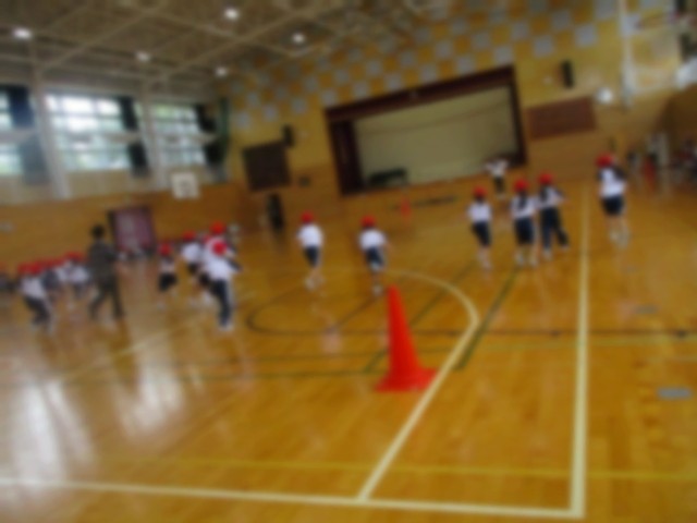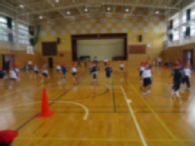 1年生もシャトルランの練習をしました。音楽に合わせて走るのは難しいので先生がペースメーカーになってくれました。
