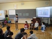 1年生の外国語の授業では、水の中の生きものを英語で学びました。また、音楽に合わせて体を動かすなど楽しい授業でした。