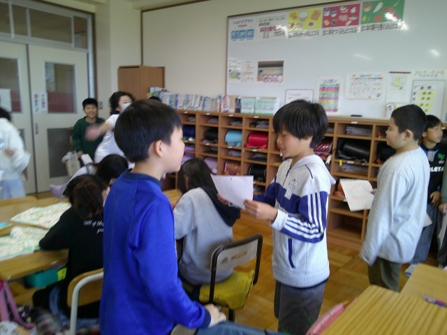 自分の考えや自分のことを友達に伝える練習をしました。よく聞く姿勢があるので、気持ちよく話ができているようでした。