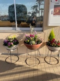 地域の方の温かいお心遣いにより、学校玄関前に季節の素敵な寄せ植えが飾られました...