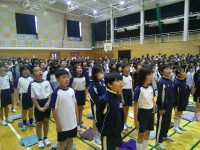 宿泊学習を月曜日にひかえた金曜日に、結団式が行われました。5年生も活躍しました...