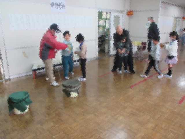 地域の方をお招きして1年生が昔遊びをしました。ベーゴマやコマ、だるま落としやおはじき、けん玉などを体験し、夢中になりながら楽しく活動することができました。地域の皆さんありがとうございました。