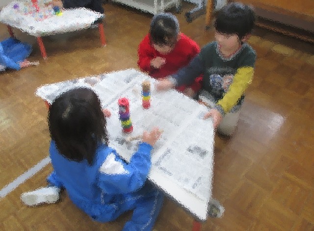 先日地域の方に教わった昔遊びを今度は近隣の園児に教えました。