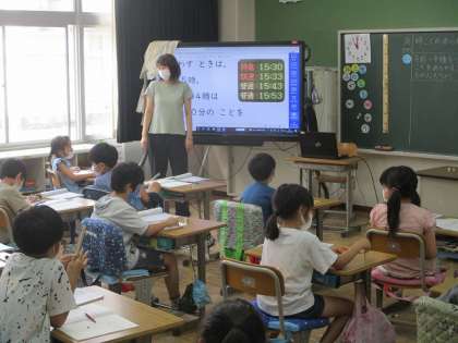 7月5日(火)15時は何時? 公開日 2022/07/05 更新日 2022/07/05 2年生 2年生の算数では時間について学習しています。 同じ時間でも午後3時と15時と大きく二つの呼び方があります。 乗り物の時刻は24時間で表示されます。 見方は1つではないことに気付く学習の1つです。