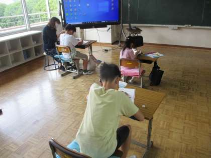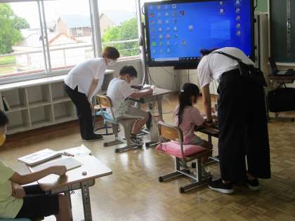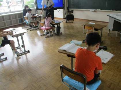 7月5日(火)算数の課題に取り組みます 公開日 2022/07/05 更新日 2022/07/06 特別支援 かがやき学級では,算数の学習です。 それぞれプリントの問題を解いて,今までの学習を確認します。 解けたらば,先生に確認してもらいます。 大きな丸がもらえたかな。