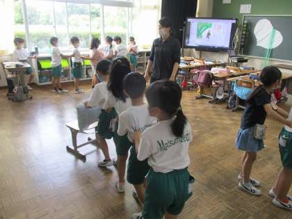 7月8日(金)うんとこしょ どっこいしょ 公開日 2022/07/08 更新日 2022/07/08 1年生 1年生の国語では物語文の音読の練習です。 動きをつけて,グループで行います。 各グループごとに音読に合わせて,動きを付けていきます。 楽しく表現力を磨いていきます。