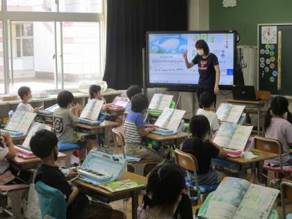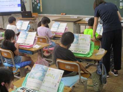 2年生の音楽では鍵盤ハーモニカの練習です。