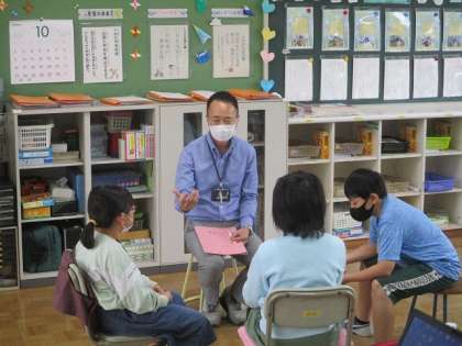 10月13日(木)自分の考えを伝えよう 公開日 2022/10/13 更新日 2022/10/13 特別支援 まなび学級では国語の学習です。 自分の考えをまとめて発表、友達からの質問に答えます。 聞いている人は内容をよく理解し、質問を考えます。 相手の話を正しく聞くことは、相互理解の基本です。