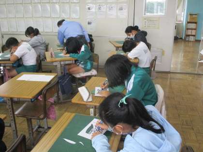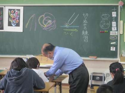 10月13日(木)切り抜きの練習 公開日 2022/10/13 更新日 2022/10/13 5年生 5年生は教科専科の先生から切り抜きについて学びます。 今日は切り抜き方の練習です。 一人一人カッターで花の形に切り抜いていきます。 曲線が難しいですが、ていねいに集中して進めていました。