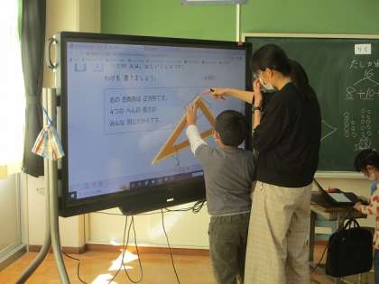 どのような図形を正方形と呼ぶのか、図形を見ながら確認です。