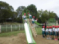 新たに本日からすべり台がデビューしました。セレモニーのあと1・2年生が楽しく滑り...