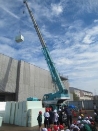 【1・2年生】うわあ~おっきいなあ~体育館工事現場で大型クレーン見学会~