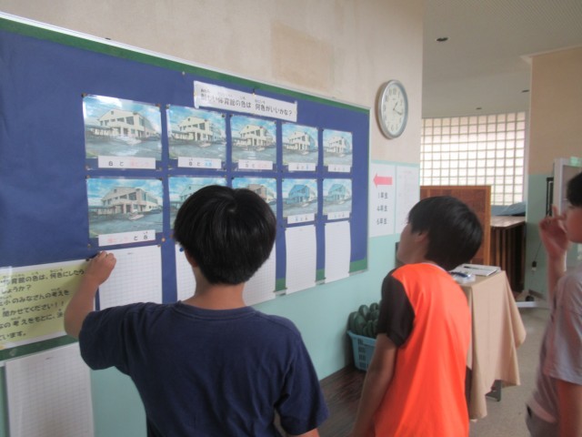 そこで、いくつかの候補の中から、子供たちが「この色の体育館がいい!!」というデザインを選んで