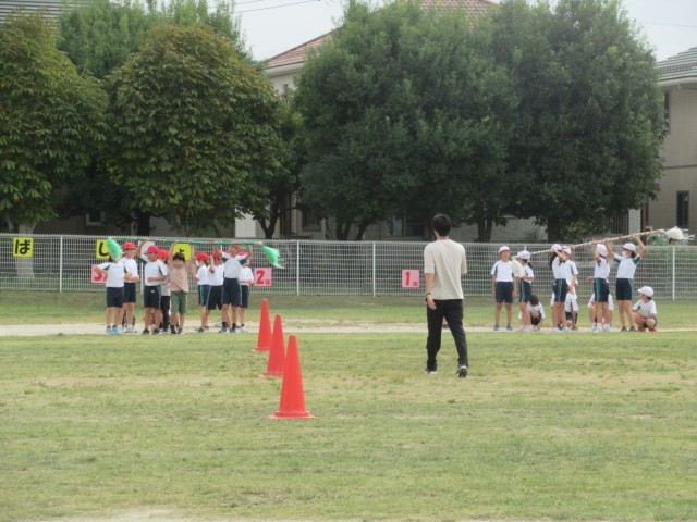 【4年生】本物の台風が近付いているけど、ぼくたちも負けないぞ~台風リレーの練習~