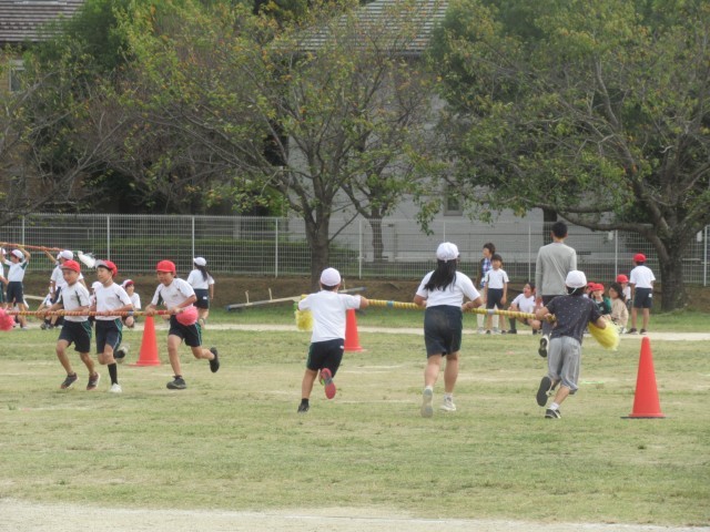 5時間目、4年生は、校庭で団体戦の練習をしました。