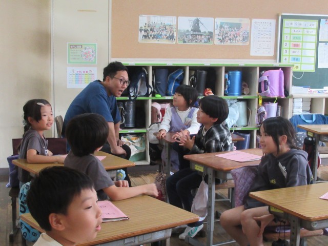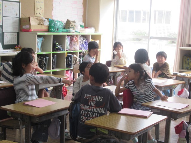 友達と順番にクイズを出し合うときは、友達の口の動きをしっかりと見て、どの虫のことを言っているのか注意深く聞いている2年生でした。