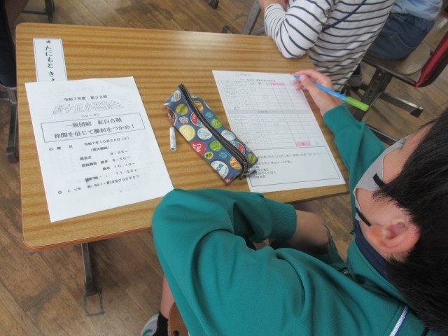 5、6年生は、自分たちの競技もありながら、全校のために、係の仕事をしなければならないという、大変な立場を背負います。