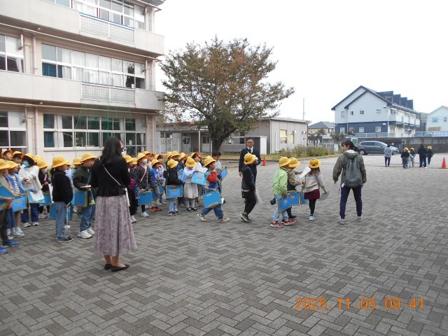 2年生は、朝からワクワク。9時45分の出発の時間には、玄関に並び、グループごとに元気よく出発していきました。
