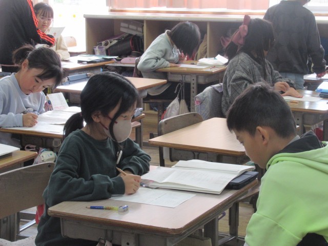 みんなが、これまで学習してきたことを自分のノートを見ながら振り返り、さっそく自力解決が始まりました。