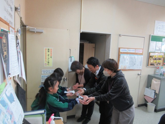 3年生が、手のひらに、とても小さな、とてもすてきなプレゼントをのせて差し出しました。