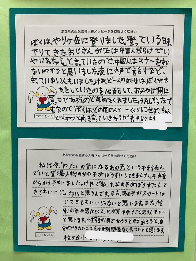 【全校】松ケ丘小を代表するにふさわしい作品~守谷市小中学校人権週間作品展~
