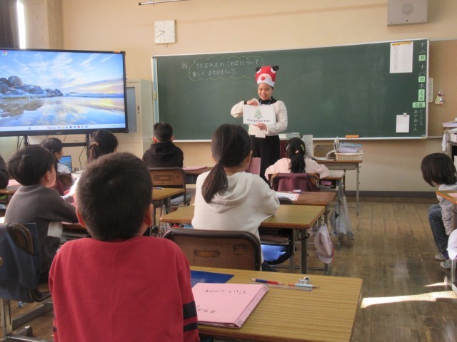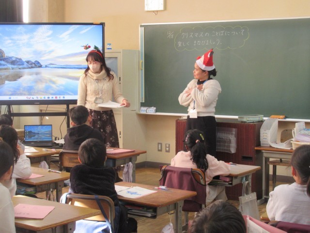 ALTの先生も、担任の先生も、サンタの帽子や、トナカイのカチューシャをして、クリスマス気分を盛り上げます。