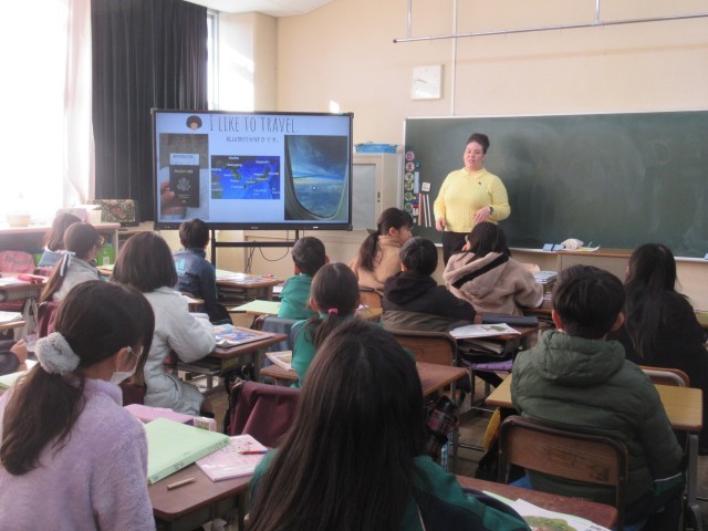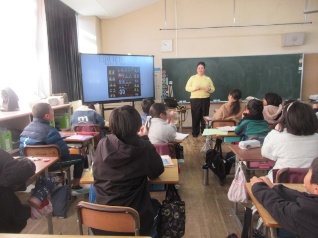 5年生の授業は、ALTの先生が、早めの冬休みで故郷に帰国したため、代わりの先生がきてくださいました。