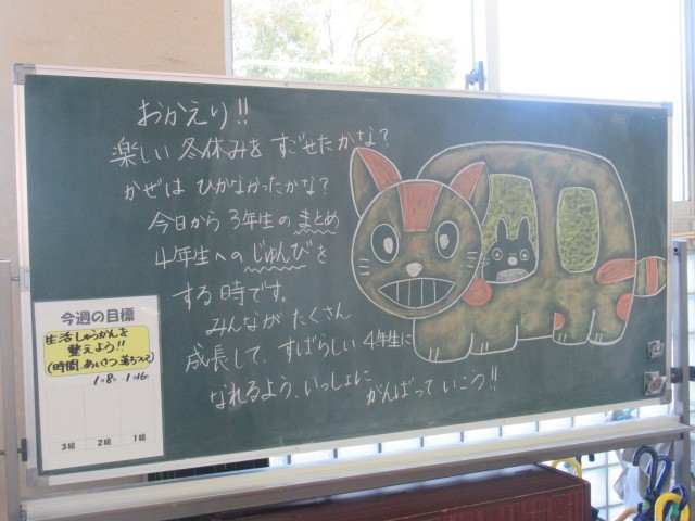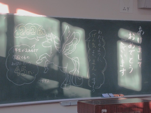 黒板には、担任の先生からのメッセージが書き込まれていました。