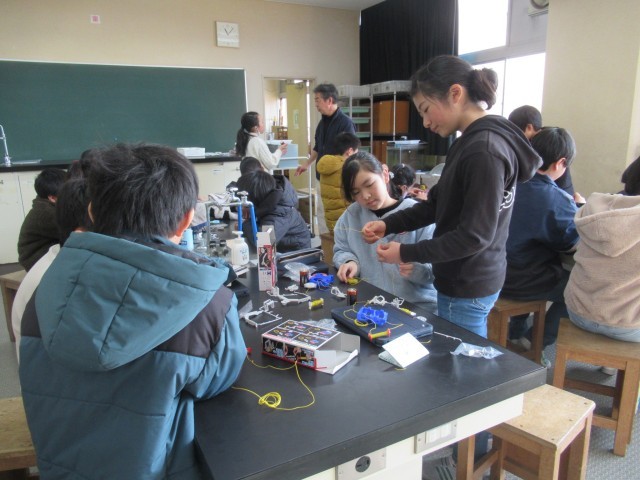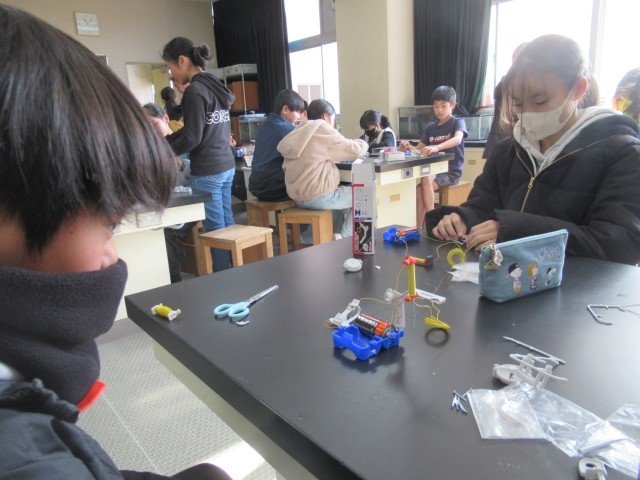 5年生は、理科室で、それぞれがなにかを組み立てています。