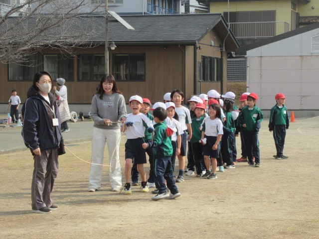 と、3組さんの縄を担任の先生と一緒にまわさせてもらいました。