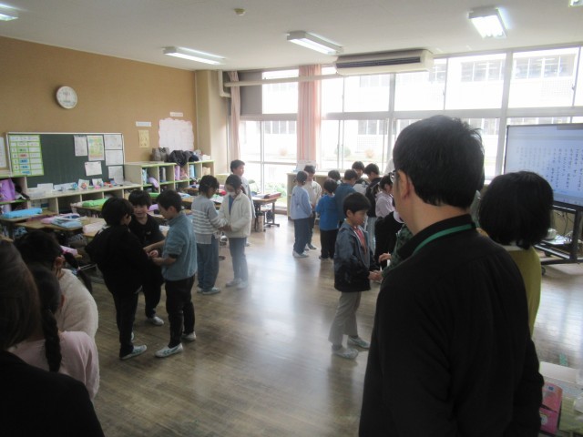 「はないちもんめ」や「ずいずいずっころばし」など、昔の手遊び歌を楽しむ音楽の時間の場面、