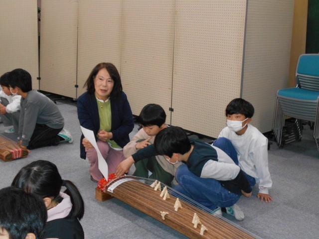 4、5年生の音楽の時間に「お琴の体験学習」を行いました。