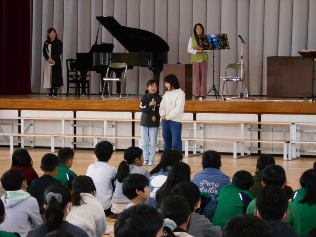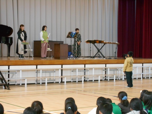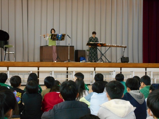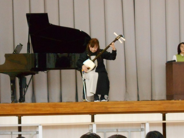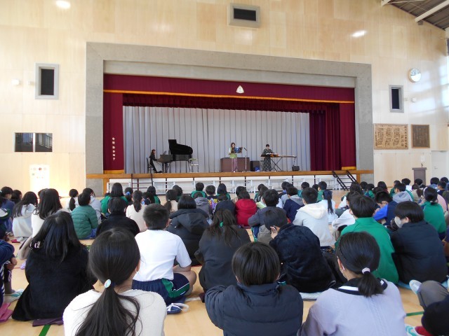 体験のあとは、体育館に移動し、琴、フルート、三味線、ピアノによるコンサート!!