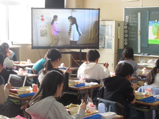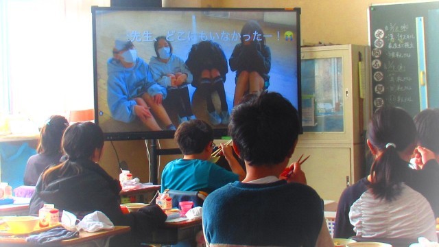 「明日の給食の時間に上映会をやるので、よかったら見に来てください。」