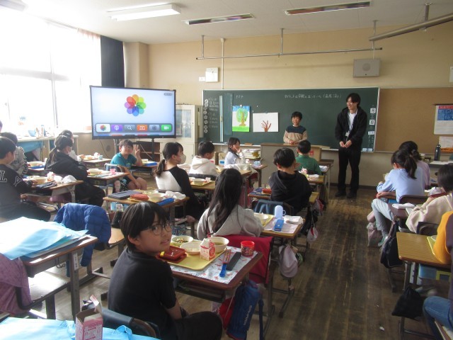 と誘ってくれたので、給食の時間にさっそくおじゃまさせてもらいました。