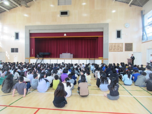 年度はじめの始業式はオンラインで画面越しでしたが、体育館が完成したこともあり、数年振りで、全校が一同に体育館に集まり、実施しました。