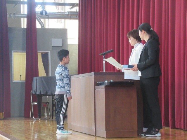 表彰式では、たくさんの児童が表彰を受けました。