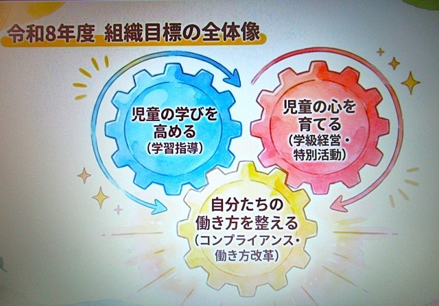 職員会議では、令和8年度を「こんな学校にしたい。」という学校経営ビジョンについて、
