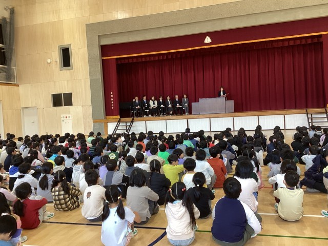 昨年度までは、オンラインで行っていたので、新しい体育館で、全校揃って、新しい先生方をお迎えできることが