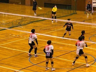 バレーボール部は、桜体育館にて、3位決定戦に向けたトーナメント戦に臨んでいます。今日の1試合目に勝つことで、3位決定戦に進めます。