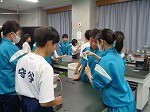 10月15日(水)今日の授業風景 2 公開日 2025/10/15 更新日 2025/10/15 生徒たちの活動 1年生の理科の授業の様子です。今日の実験は、「水素」を発生させる実験です。水上置換法を用い、実験がスタートしていました。グループの友達と協力し、目的の気体の発生に取り組む生徒たちです!