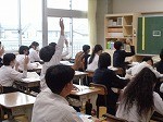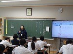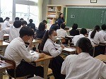 島崎藤村の「初恋」の詩の学習に取り組んでいました。今日のテーマは、この詩にはどんな表現の特徴があるかを考えることです。詩全体を読み、口語体か文語体か、定型詩か自由詩かなどについて考える生徒たち。「・・・けり」などの言葉から、その特徴がつかめているようです!
