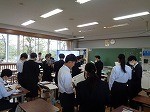「古典」の学習に取り組む生徒たち。教室を訪ねた時は、「徒然草」の音読に取り組んでいるところでした。担当の先生の範読に続いて、「仁和寺にある 法師 年寄るまで 石清水を拝まざりければ・・・」と読む生徒たち。しっかり声を出しながら、練習する姿が見られました。上手く読むことができてきたところで、近くの友達と読み合う活動にもチャレンジしていました。