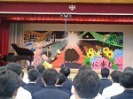 10月24日(金)松風祭の様子 1 公開日 2025/10/25 更新日 2025/10/25 生徒たちの活動 オープニングの壁画発表の様子です。美術部の生徒たちが、松風祭テーマ「共創 ~共に歩む」を表現してくれました!未来へと続く、素敵な壁画です! +1